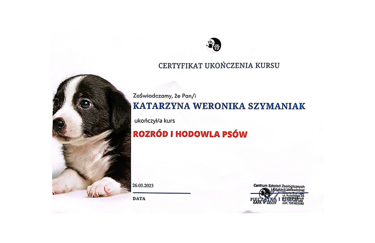 Wiemy, że bycie hodowcą to nieustanny rozwój, dlatego szkolimy się i rozwijamy również po to aby móc przekazać Tobie – przyszłemu właścicielowi naszego szczeniaka, wszystkie wskazówki odnośnie późniejszej socjalizacji i opieki.